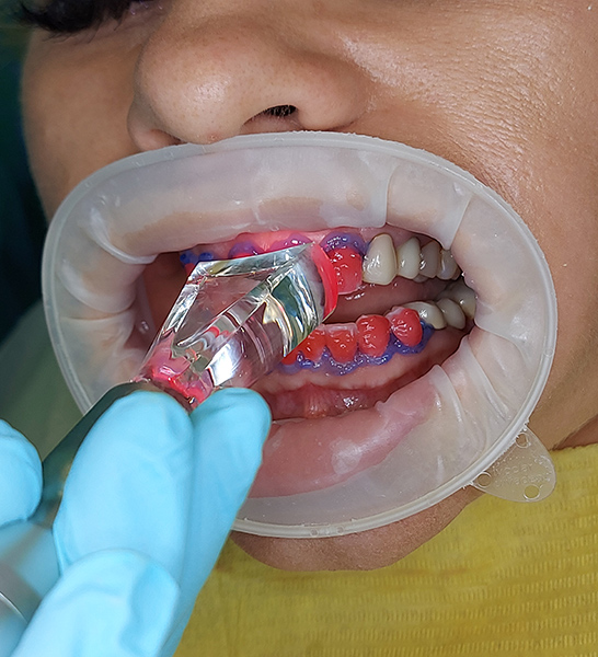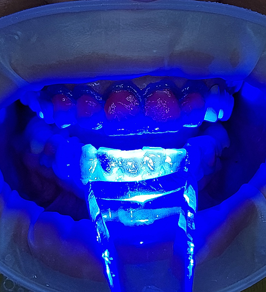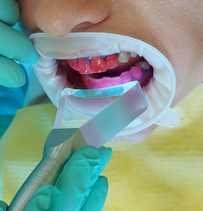Pregatirea pentru albirea cu laser include tratamentul profilactic: detartraj, igienizare, periaj profesional si airflow.